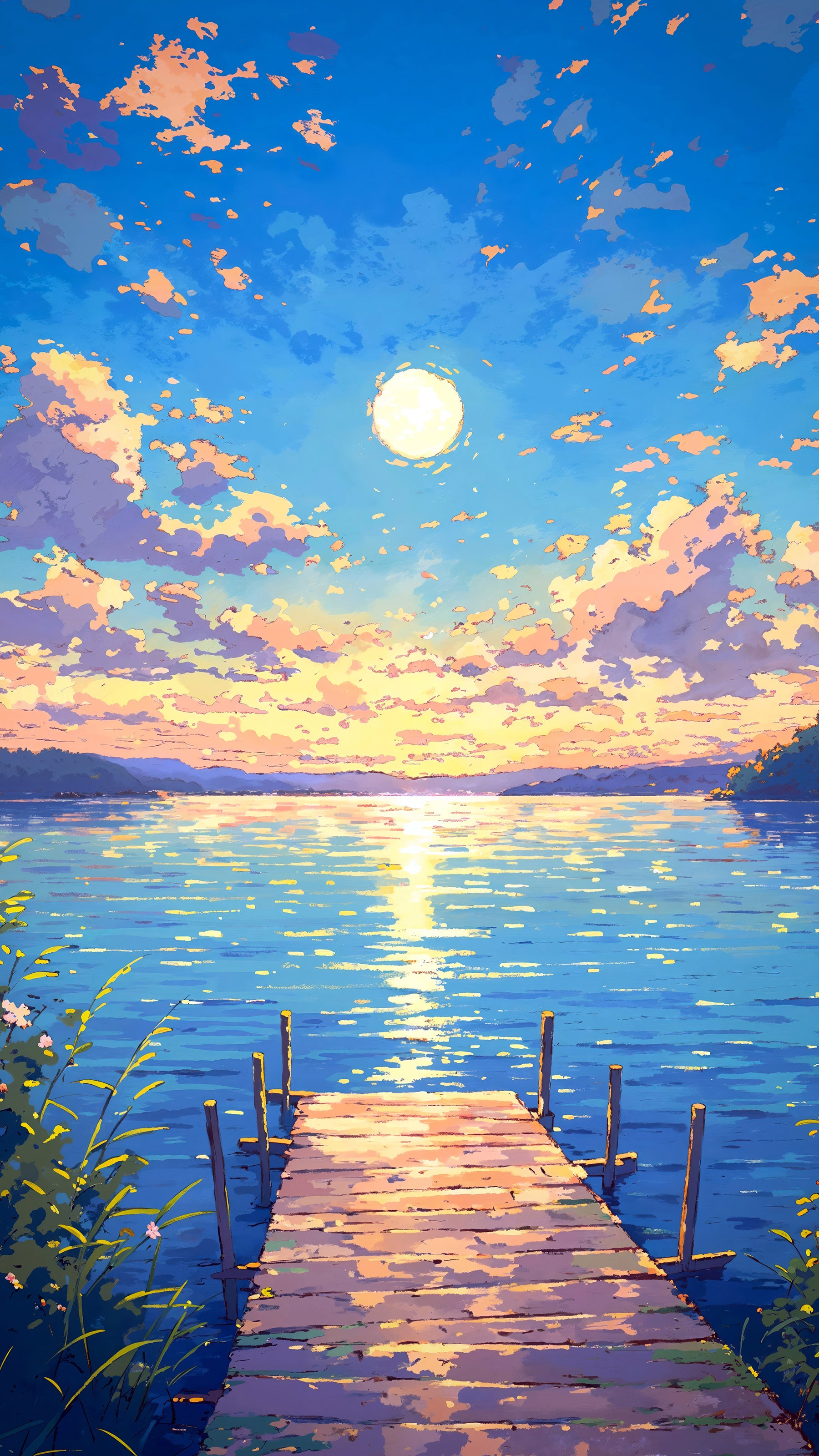 As the day wanes, she finds her way to a forgotten pier, her retreat where day and night hold court in the sky's vast canvas. The setting sun, a fiery orb, slips slowly behind the horizon, draping the world in a twilight glow. Here, at the day's gentle close, she stands still, a solitary figure amidst the quiet light rippling on the water's surface.